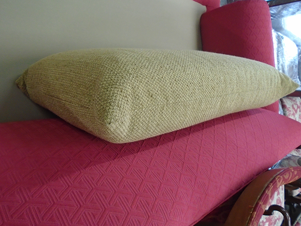 Option #3: Foam with double Dacron wrap is recommended if you never want to fluff your back cushions again or if your dog, cat, or kids lay or sit on top of your back cushions. Going with foam is a boxier, stiffer-looking option as opposed to #1 or #2 as listed above.