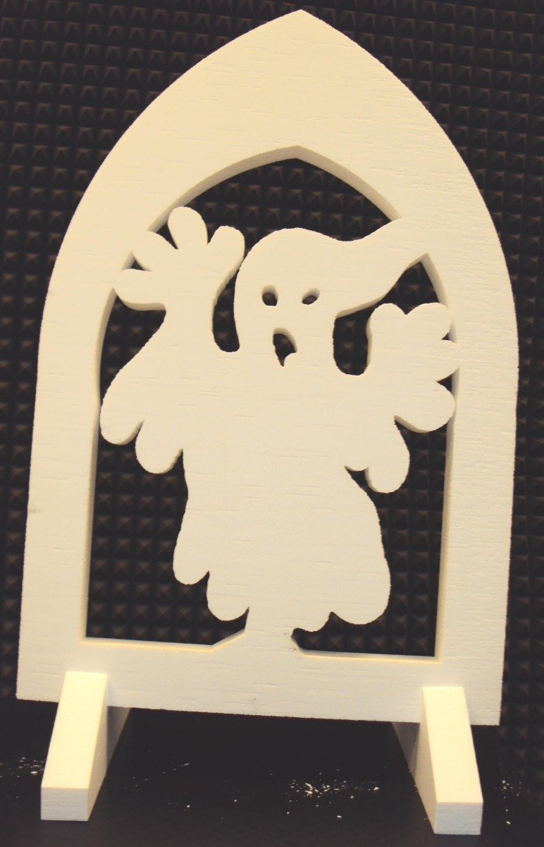 Tombstone in the size 23" Wide x 35” High x 2” Thick with a scary image background inside the tombstone and comes with stains extra support and to hold in place.