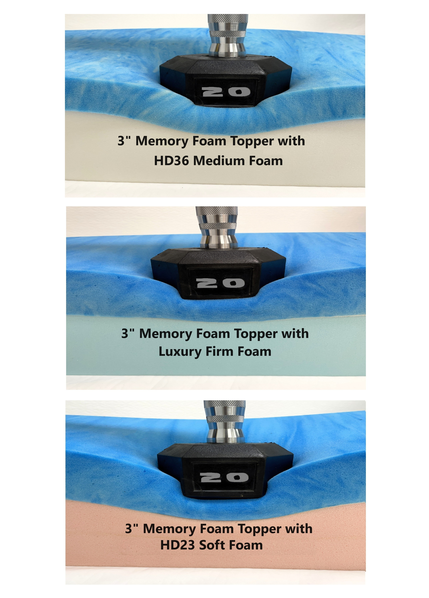 If you are looking for a new Mattress with a Memory foam topper this option is for you. Comes with 3" thick memory foam glued to a 6" thick foam base. On the bottom base, you have an option between Firm, Medium, and soft foam types.