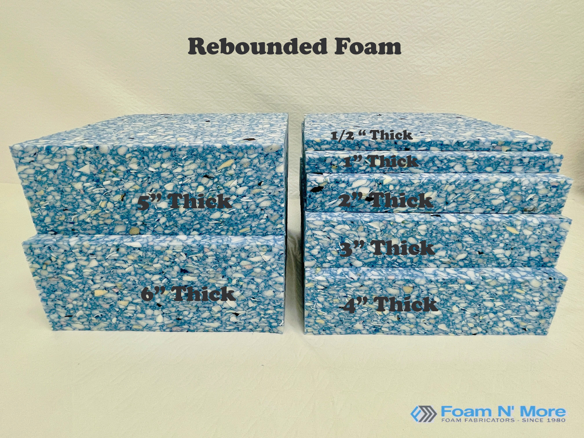 Rebounded foam is bigger than stated because there will be perimeter edges that will not be clean off and is extremely rough. If you would like to see photos, please let us know. Rebounded foam has a rough texture at the top it is best to add dacron wrap at the top to have a smooth surface when upholstering.