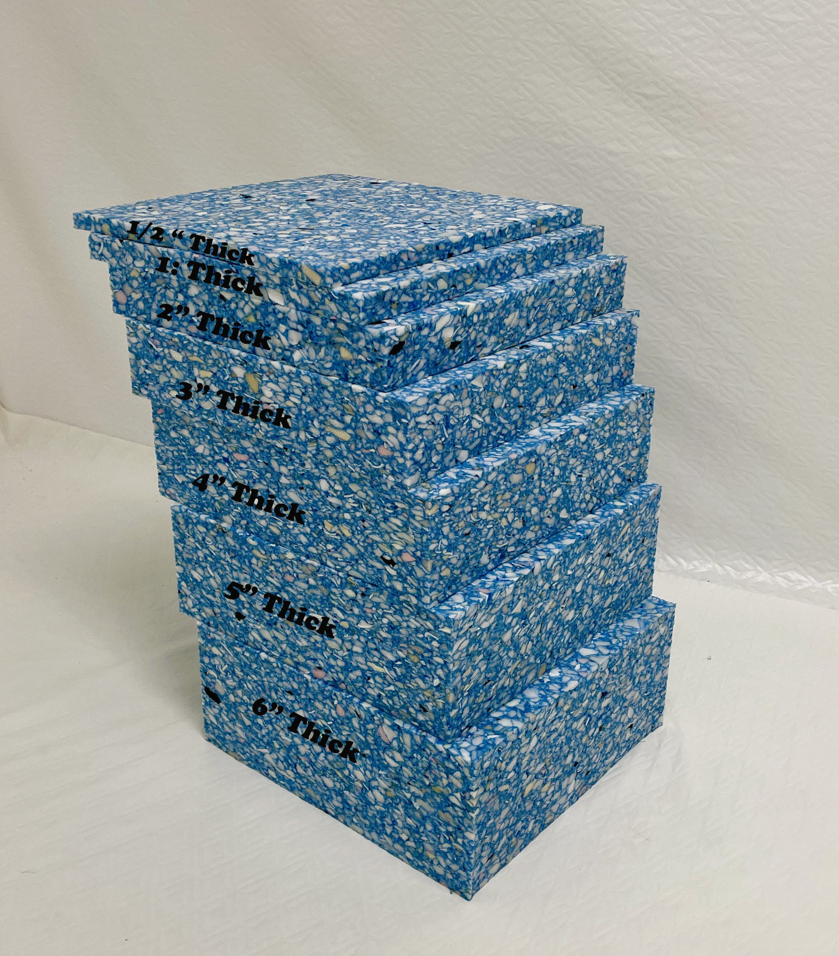 Rebonded foam is an open-cell multi-colored polyurethane foam that is firm but flexible. This foam is made from reclaimed and scrapped foams. Our rebounded foam is a 6lb density which allows for it to be used in many different applications. Commonly used as carpet padding, rebounded foam can also be used for foam sitting ottomans, Arabic seating, gymnastics pads, motorcycle seats, etc. Rebonded foam is great to use for things that get maximum use that require durability. It can be used for commercial uses such as restaurant booths and bar seats or residential applications such as tractor seats, snowmobile seats or floor seating.