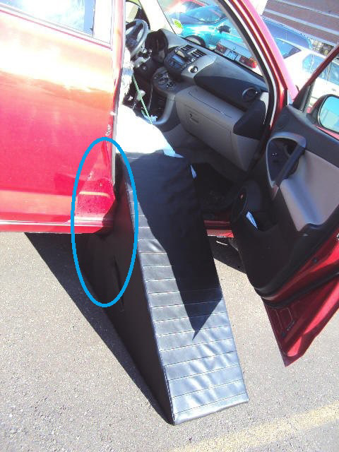 We carry a Pet Ramp for your car. This pet ramp is custom-made to fit the shape of the side panel of your car. With this grip method, your pet will feel more comfortable getting in and out of the car without the ramp moving.
