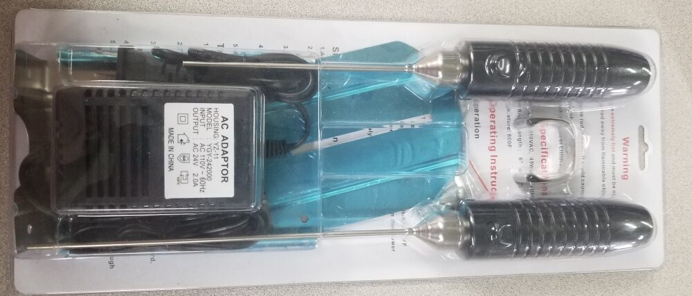 The Tough 6″ Heated Rod ONLY with Pro Power Supply and Versatile Sled Guide, Table Adaptor, and Stand. The Stainless Steel Rod has high-tech insulation that allows continuous duty without shutting down to cool. Ergonomic stay on the power switch. It heats to over 750 degrees Fahrenheit within one minute. It can turn corners and cut circles. It is offered in 110 and 220 volts.