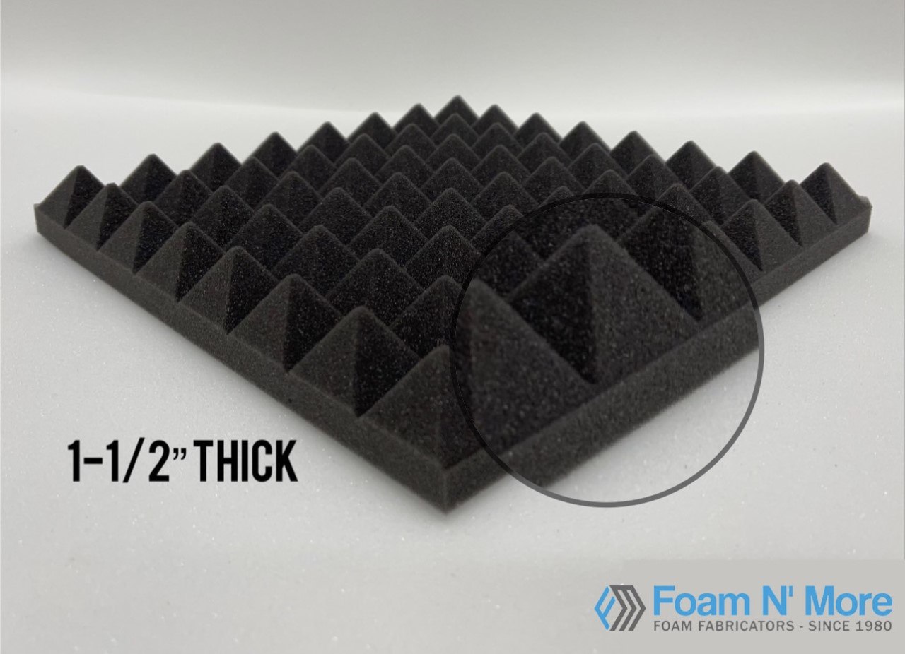 1.5” Thick Acoustic Pyramid foam is exclusive unique thickness that no one on the acoustic market has in this shape and is a cheaper alternative. Perfect for echo or reverberation and acoustically sound deadening rooms, with a lot of bouncing sound waves.