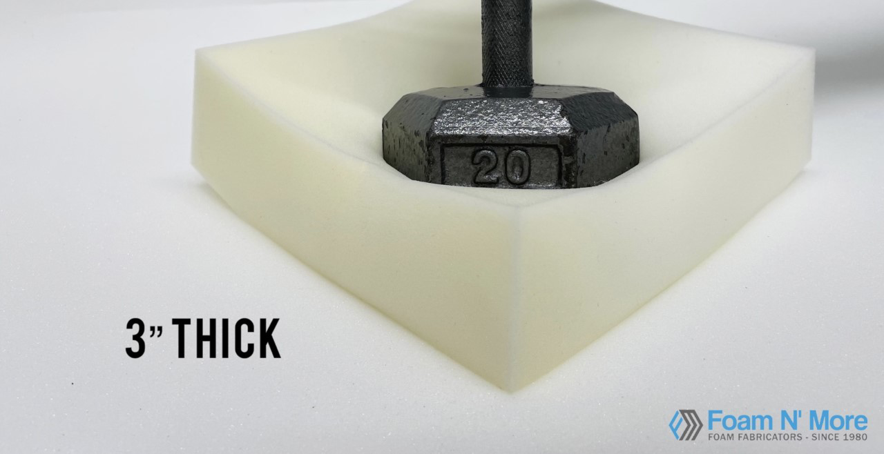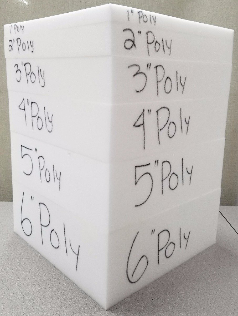 Our Standard Medium foam otherwise known as Poly foam is a medium density standard foam that is meant more so for temporary uses. This foam is not high density, nor is it rubber based so it will not last any longer than 1-3 years with daily use. This foam type is usually used for arts and crafts, camping pads, temporary guest beds, fold out beds, upholstered headboards and footboards, and pet beds.