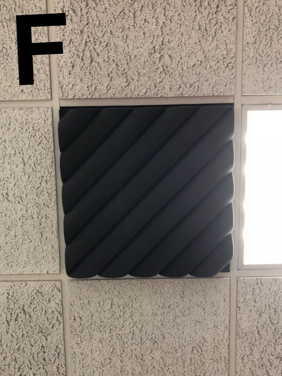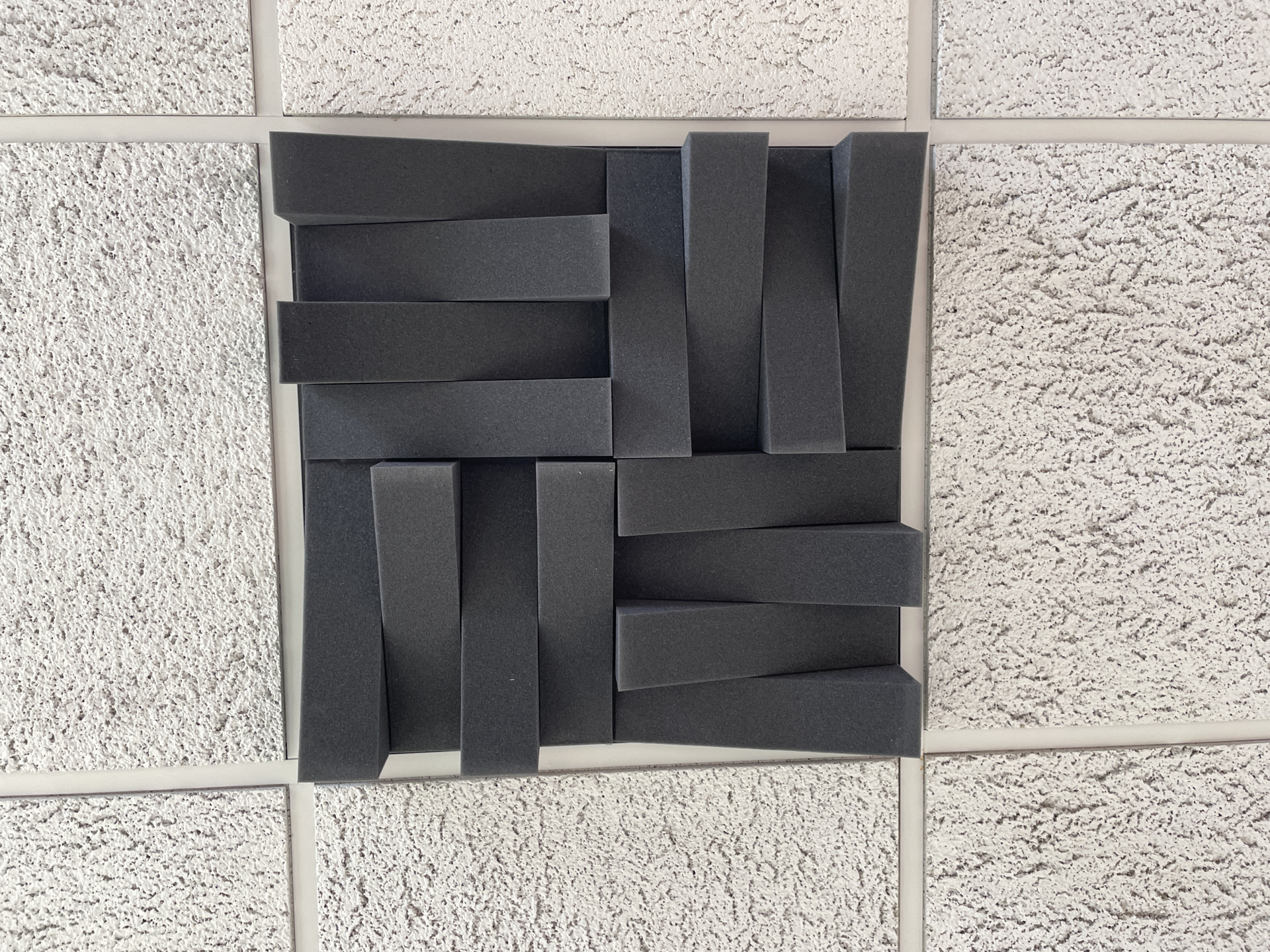 Our acoustic ceiling tiles are designed to trap and deflect sound energy. They are made of open-cell, flame-retardant polyester foam. The design is very pleasing to the eye and offers outstanding sound absorption qualities. Our practical 24 x 24 tile size makes installation a snap in any room. We offer the perfect solution for rehearsals, radio stations, and more. Install tiles easily with spray adhesive, double-sided tape, contact cement, or glue/caulk.